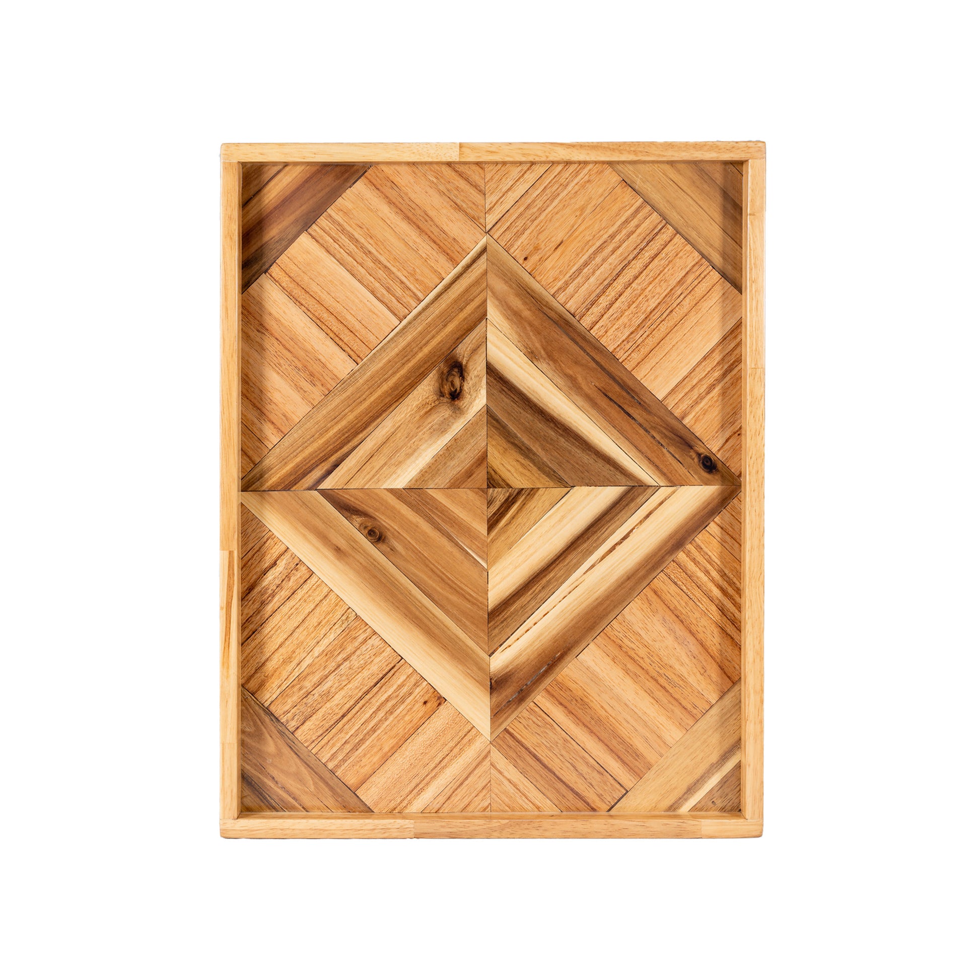 Showcasing a stunning solid wood inlay pattern, our trays adds a touch of sophistication. The intricate design highlights the natural beauty of the wood, making each tray a unique statement piece.