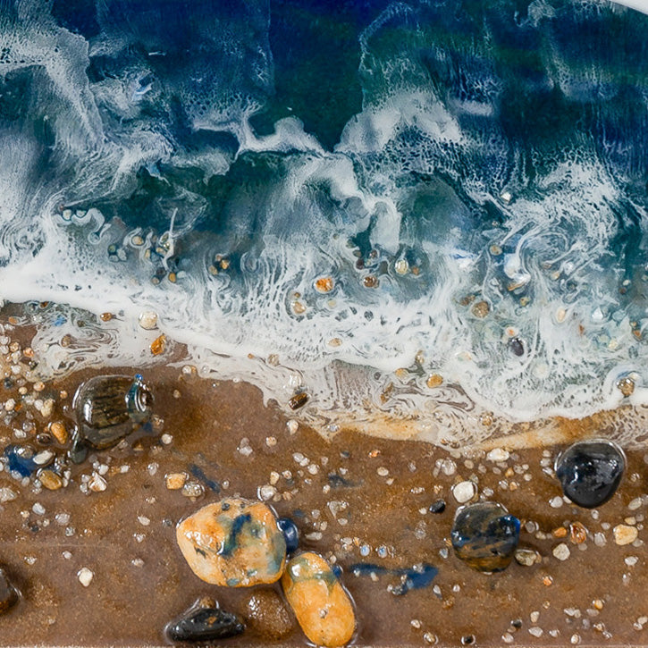 Ocean-Inspired Epoxy Wall Art with Natural Sand and Wood Frame